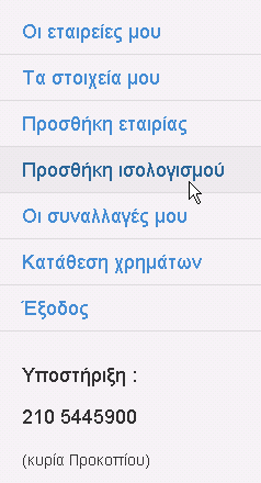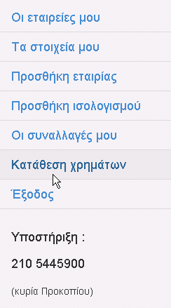 Στο μενού αριστερά επιλέξτε Κατάθεση χρημάτων.